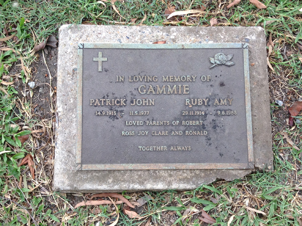 | Gammie | Patrick John | photo | 14/09/1913 | 11/05/1977 | f/o Robert, Ross, Joy, Clare & Ronald | ||