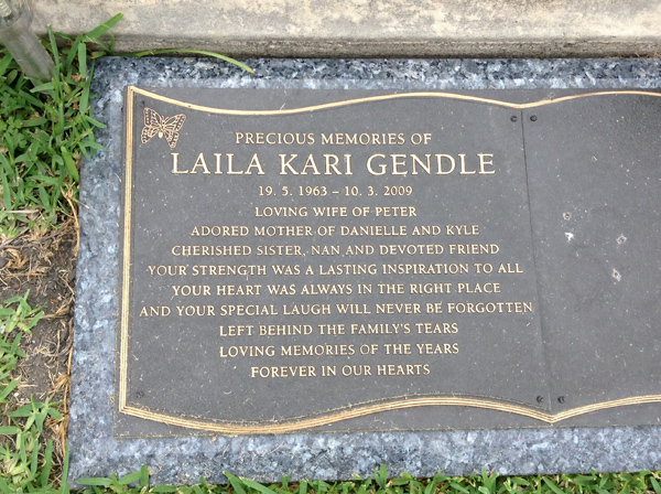 | Gendle | Laila Kari | photo | 19/05/1963 | 10/03/2009 | w/o Peter, m/o Danielle & Kyle | ||