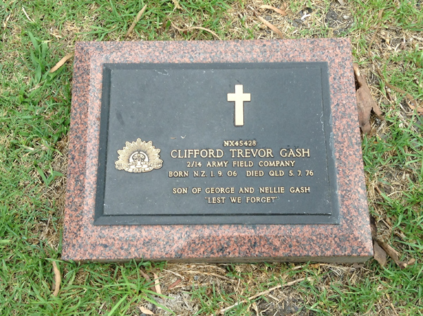 | Gash | Clifford Trevor | photo | 1/09/1906 | 5/07/1976 | Born NZ, NX45428, 2/14 Army Field Company, s/o George & Nellie Gash | ||