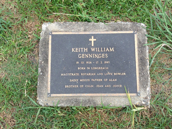 | Genninges | Keith William | photo | 19/10/1926 | 17/02/1993 | f/o Alan, b/o Colin, Jean & Joyce | ||