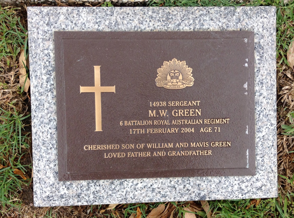 | Green | M W | photo | 17/02/2004 | 71 | 14938 Sergeant, 6 Battalion Royal Aust Regiment, s/o William & Mavis Green | ||