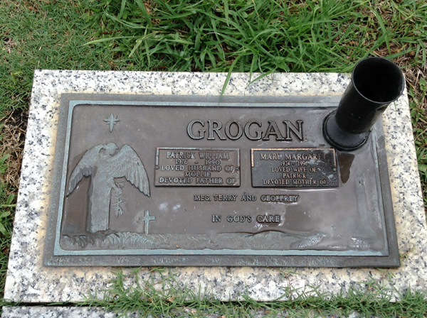 | Grogan | Mary Margaret | photo | 1924y | 1996y | w/o Patrick, m/o Meg, Terry & Geoffrey | ||
