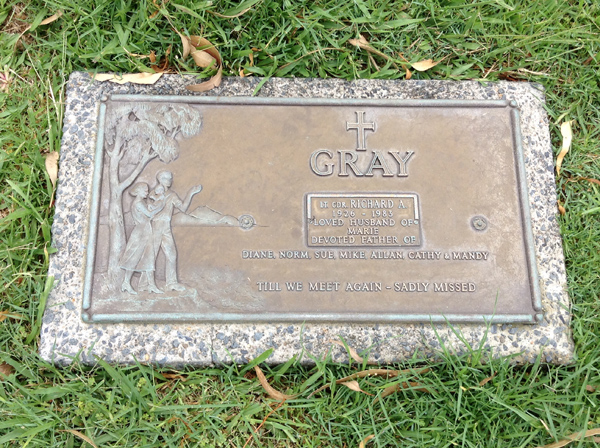 | Gray | Richard A | photo | 1926y | 1983y | h/o Marie, f/o Diane, Norm, Sue, Mike, Allan, Cathy & Mandy | ||