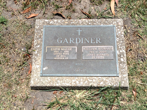 | Gardiner | Edith Maude | photo | 1914y | 1991y | w/o Bill, m/o Ross | ||