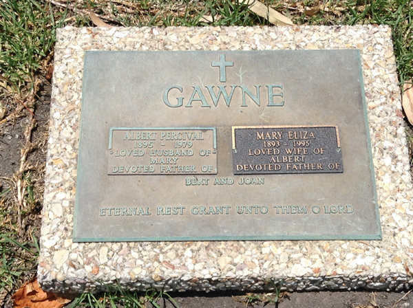 | Gawne | Mary Eliza | photo | 1893y | 1995y | w/o Albert, m/o Bert & Joan | ||