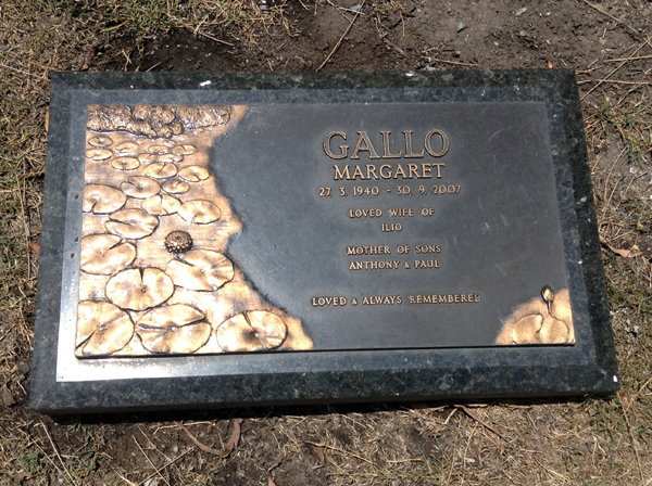 | Gallo | Margaret | photo | 27/03/1940 | 30/09/2007 | w/o Ilio, m/o Anthony & Paul | ||