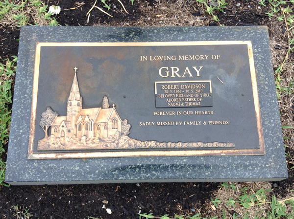 | Gray | Robert Davidson | photo | 28/05/1956 | 30/05/2010 | h/o Yuki, f/o Naomi & Thomas | ||