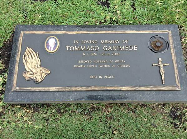 | Ganimede | Tommaso | photo | 6/01/1936 | 28/06/2010 | h/o Giulia, f/o Giselda | ||