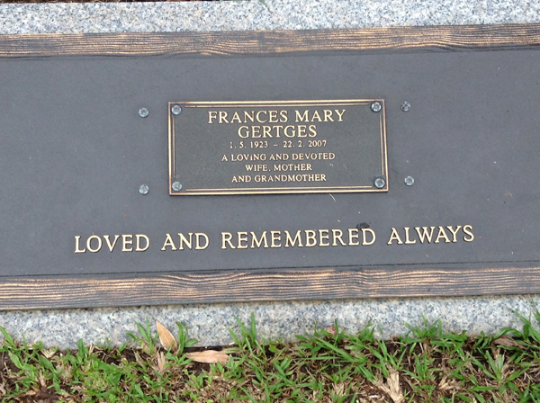 | Gertges | Frances Mary | photo | 1/05/1923 | 22/02/2007 | |||