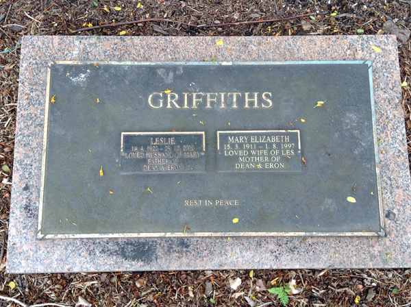 | Griffiths | Mary Elizabeth | photo | 15/03/1911 | 1/08/1997 | w/o Less, m/o Dean & Eron | ||