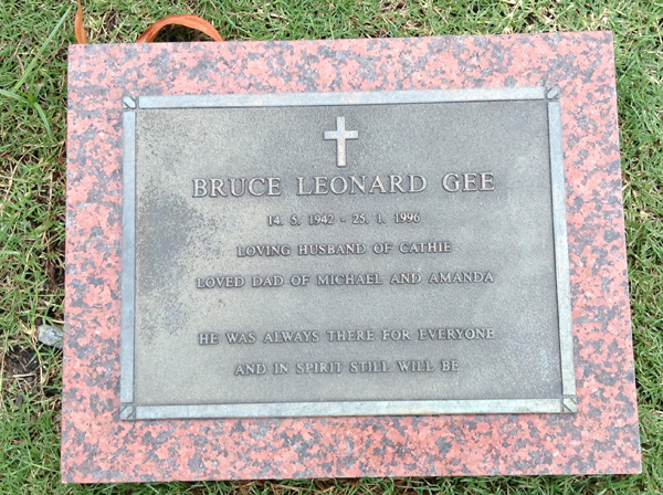 | Gee | Bruce Leonard | photo | 14/05/1942 | 25/01/1996 | h/o Cathie, f/o Michael & Amanda | ||
