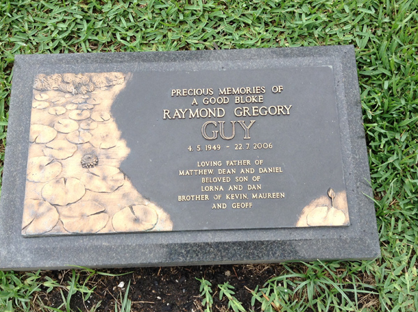 | Guy | Raymond Gregory | photo | 4/05/1949 | 22/07/2006 | f/o Matthew, Dean & Daniel, s/o Lorna & Dan, b/o Kevin, Maureen & Geoff | ||