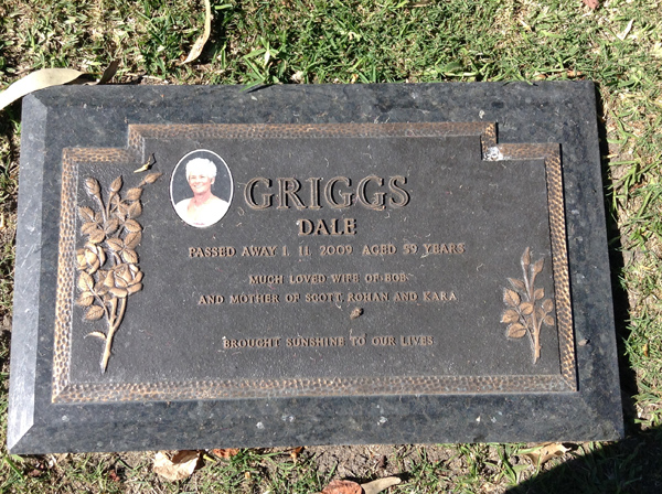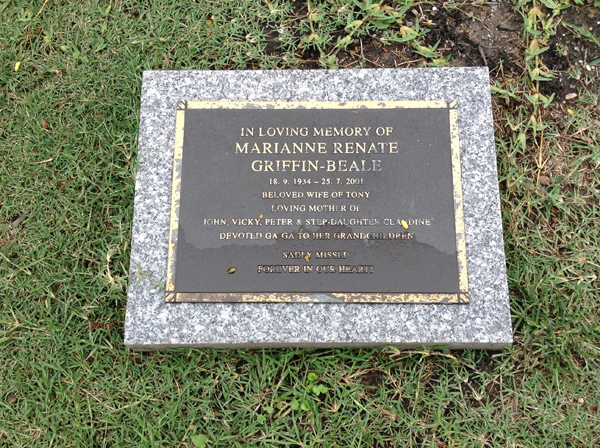| Griffin-Beale | Marianne Renate | photo | 18/09/1934 | 25/07/2001 | w/o Tony, m/o John, Vicky, Peter & Step-daughter Claudine | ||