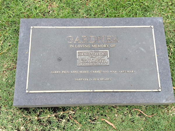| Gardner | Cornelius Lawrence (Con) | photo | 5/01/1930 | 6/06/1999 | h/o Jean, f/o Garry, Paul, Anne-Marie, Carmel & Margaret-Mary | ||