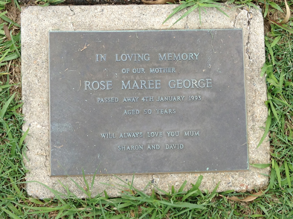 | George | Rose Maree | photo | 4/01/1993 | 50 | Mum, Sharon & David | ||