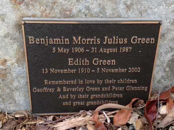 | Green | Benjamin Morris Julius | photo | 5/05/1906 | 31/08/1987 | f/o Geoffrey & Beverley Green & Peter Glenning | ||