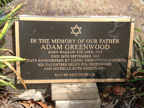 | Greenwood | Adam | photo | 4/04/1917 | 26/09/1985 | Born Warsaw, remembered by Janina Greenwood-Sandecki, f/o Helen Eva Greenwood & Michelle Ruth Greenwood | ||