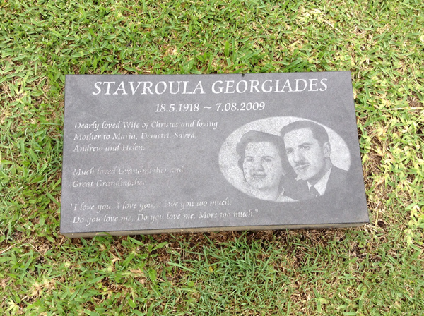 | Georgiades | Stavroula | photo | 18/05/1918 | 7/08/2009 | w/o Christos, m/o Maria, Demetri, Savva, Andrew & Helen | ||