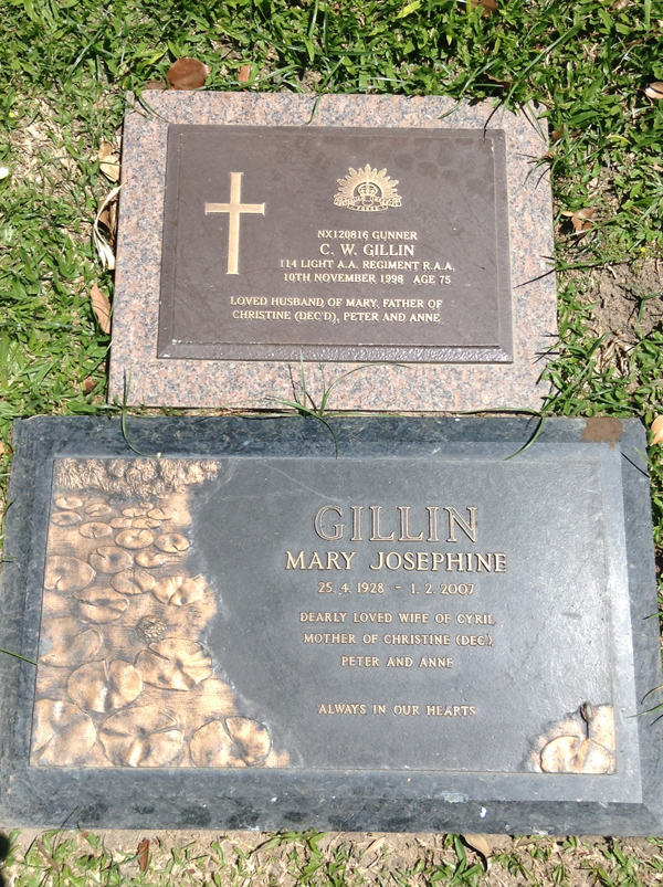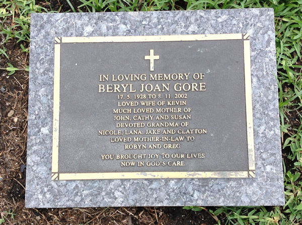 | Gray | Betty Ellen | photo | 8/12/1924 | 17/05/2014 | w/o Fred, m/o Gerald, Elizabeth, Robert, Ellen, Neville, Fiona & Debra | ||