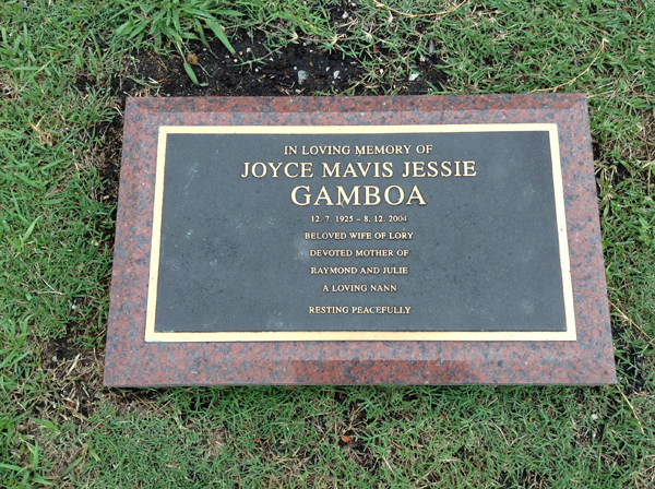 | Gamboa | Joyce Mavis | photo | 12/07/1925 | 8/12/2004 | w/o Lory, m/o Raymond & Julie | ||
