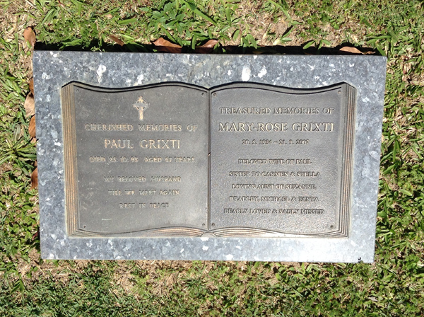 | Grixti | Mary-Rose | photo | 20/05/1934 | 21/09/2007 | W/o Paul S/o Carmen & Stella A/o Suzanne, Bradley, Michael & Tanya | ||