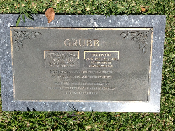 | Grubb | Edward William | photo | 20/01/1909 | 7/07/2000 | 91 | H/o Phyllis Amy | |