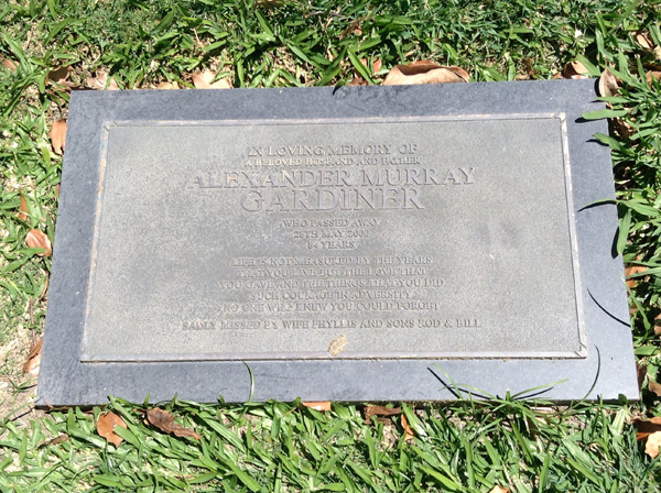 | Gardiner | Alexander Murray | photo | 28/05/2000 | 84 | H/o Phyllis f/o Rod & Bill | ||