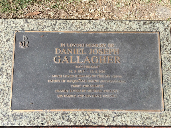 | Gallagher | Daniel Joseph (Dan The Man) | photo | 14/03/1917 | 12/02/2001 | h/o Jean, f/o Diane & Robyn | ||