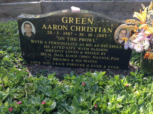 | Green | Aaron Christian | photo | 20/03/1987 | 30/10/2007 | 84 | w/o Frank, m/o Cindy, Partner Steve | |