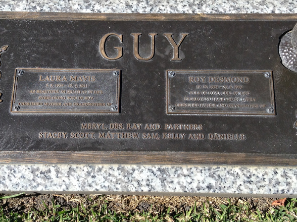 | Guy | Roy Desmond | photo | 30/10/1927 | 26/06/2012 | missed by Carolyn, Jim, Haylee & Caitlin | ||