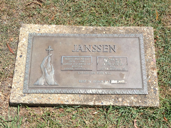 | Janssen | Bertha A L | photo | 1913y | 1990y | w/o Bill, m/o Leo, Adelien, Rudy & Will | ||