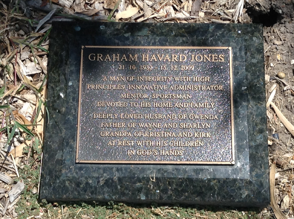 | Jones | Graham Havard | photo | 21/10/1932 | 15/12/2009 | h/o Gwenda, f/o Wayne & Sharlyn, G/pa of Kristina & Kirk | ||
