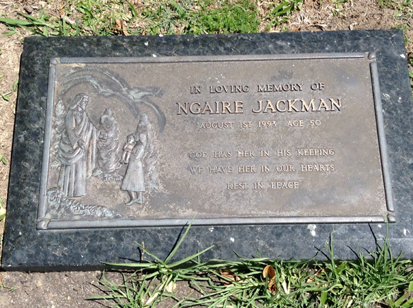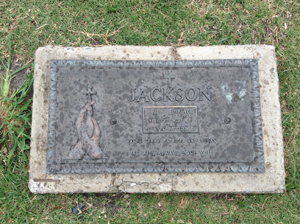 | Jackson | Pauline Florence | photo | 3/02/1932 | 17/07/1993 | w/o Stan, m/o Wayne, Terry, Patricia & Susan | ||
