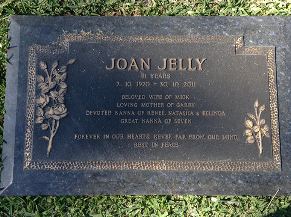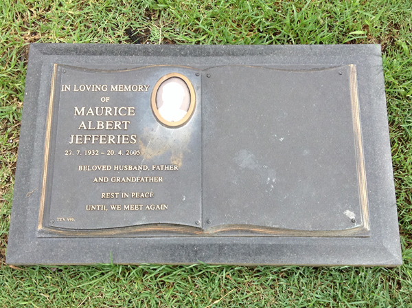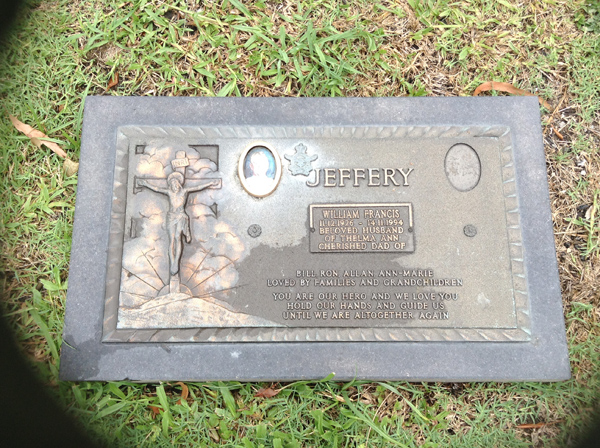 | Jeffery | William Francis | photo | 11/12/1926 | 14/11/1994 | h/o Thelma Ann, f/o Bill, Ron, Allan, Ann-Marie | ||
