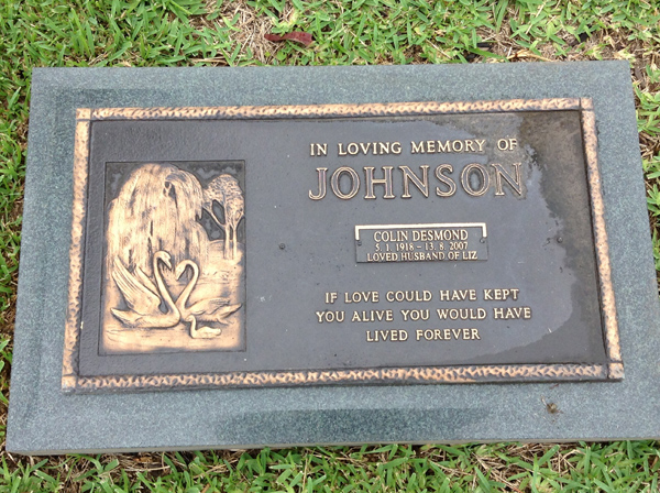 | Johnson | Colin Desmond | photo | 5/01/1918 | 13/08/2007 | h/o Liz | ||