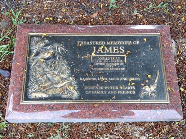 | James | Donald Brian | photo | 25/10/1930 | 19/09/2013 | h/o Betty, f/o Karenne, Lynn, Mark & Helen | ||