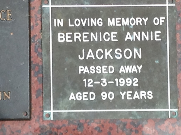 | Jackson | Berenice Annie | photo | 12/03/1992 | 90 | |||