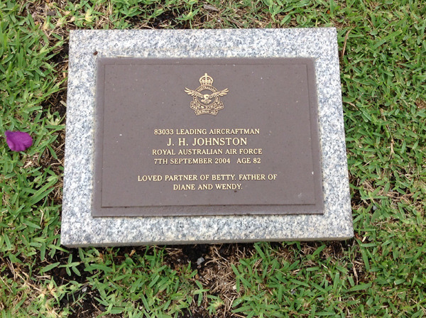 | Johnston | J H | photo | 7/09/2004 | 82 | 83033 Leading Aircraftman, RAAF, Partner of Betty, f/o Diane & Wendy | ||