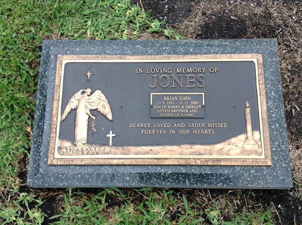 | Jones | Brian John | photo | 10/09/1955 | 15/12/2009 | s/o Barry & Shirley, brother and father of Daniel | ||