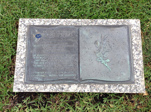 | Judd | Janet | photo | 11/09/1947 | 23/11/1999 | w/o John, m/o Tony, Glenn, Wayne & Kylie | ||