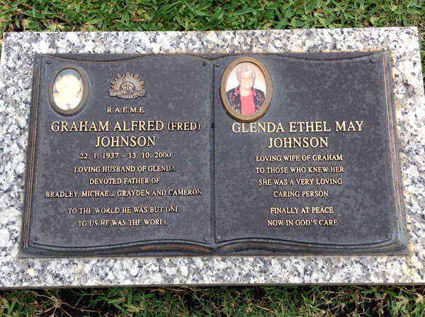 | Johnson | Graham Alfred (Fred) | photo | 22/01/1937 | 13/10/2000 | h/o Glenda, f/o Bradley, Michael, Grayden & Cameron | ||