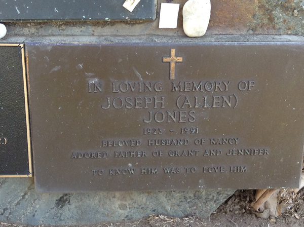 | Jones | Joseph (Allen) | photo | 1923y | 1991y | H/o Nancy f/o Grant & Jennifer | ||