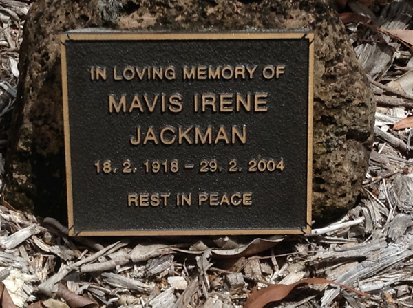 | Jackman | Mavis Irene | photo | 18/02/1918 | 29/02/2004 | |||