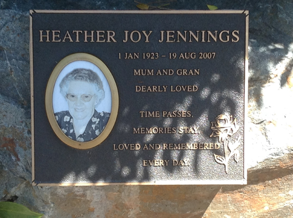 | Jennings | Heather Joy | photo | 1/01/1923 | 19/08/2007 | |||