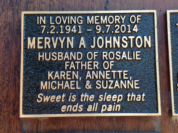 | Johnston | Mervyn A | photo | 7/02/1941 | 9/07/2014 | |||