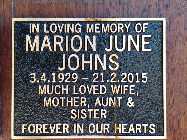 | Johns | Marion June | photo | 3/04/1929 | 21/02/2015 | f/o Taylor, Ben & Kruise. Nomads MC | ||