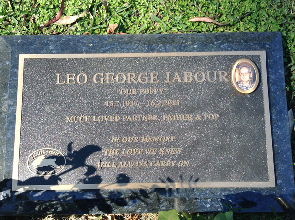 | Jabour | Leo George | photo | 15/07/1937 | 16/02/2015 | h/o Audrey, f/o Michael & Peter, father-in-law of Jann & Debbie, poppy of Casey, Jamie & Joshua | ||