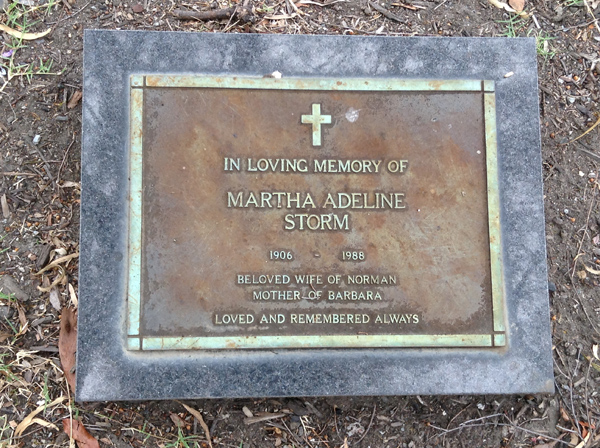 | Storm | Martha Adeline | photo | 1633 | 1906y | 1988y | w/o Norman, m/o Barbara | ||