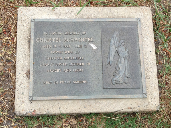 | Schechtel | Christel | photo | 1650 | 7/07/1993 | 51 | w/o Herman Schechtel, m/o Tracey & Linda | ||