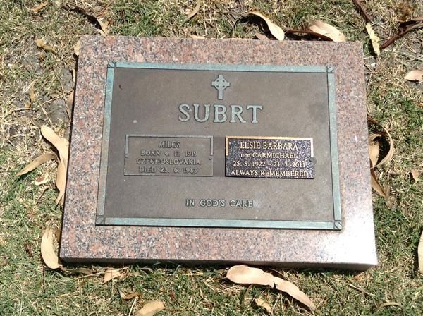 | Subrt | Elsie Barbara | photo | 1954 | 25/05/1922 | 21/03/2011 | nee Carmichael | ||